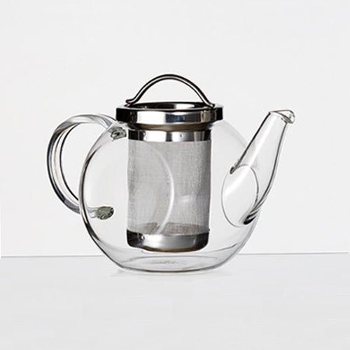 Tetera de cristal y acero inoxidable.