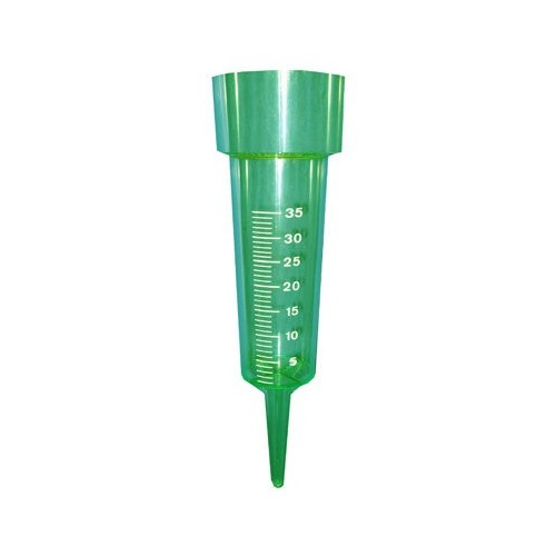Pluviometro graduado que nos indica exactamente las precipitaciones en litros por metro cuadrado, tambien nos ayuda a economizar agua en el riego por aspersión.