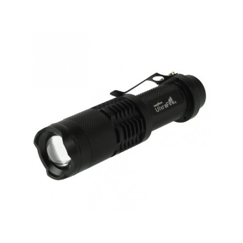 Mini Linterna UltraFire de color negro con 1 LED tipo Cree con 180 lúmenes de luminosidad máxima una una vida estimada de 100000 horas.