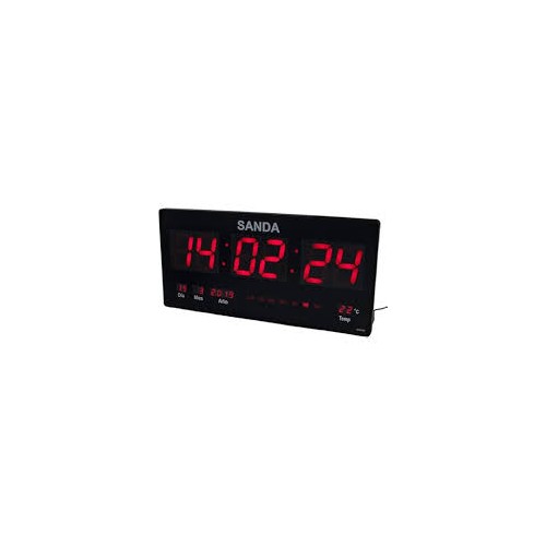 Sanda SD-4130 Reloj Digital LED Rojo, Calendario, Termómetro, Alarma, Fuente de alimentación, para pared y mesa