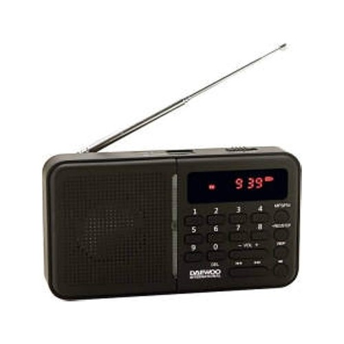 Radio Digital Daewoo - Radio FM - Radio con USB/mp3 - Bateria Recargable, Altavoz Frontal, Salidas Auriculares, MicroSD, Negro